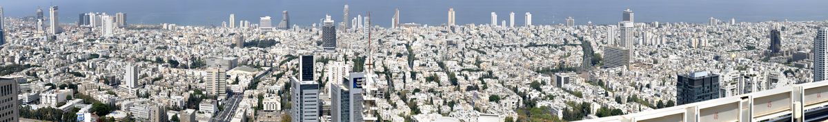 Skyline of Tel Aviv, Ramat Gan, Bnei Brak, and هرتسليا taken from the Azrieli Center