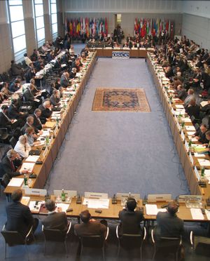 منظمة الأمن والتعاون في اوروپا (OSCE)، هي أكبر منظمة غير حكومية في مجال الأمن في العالم. وتعمل المنظمة على الحد من التسليح، تشجيع حقوق الإنسان، حرية الصحافة، والانتخابات النزيهة. للمنظمة 550 مقر رسمي وحوالي 2300 موظف.[1]