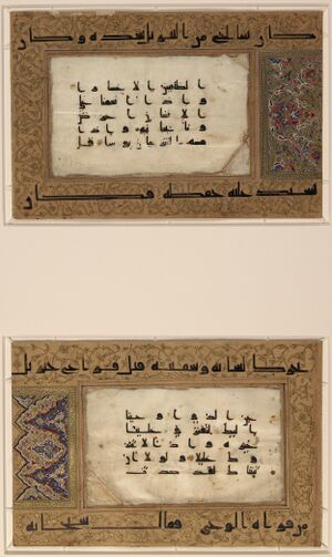 52. ^ أ ب ت Massumeh, Farhad; Rettig, Simon (2016). The Art of the Qu'ran: Treasures from the Museum of Turkish and Islamic Arts (in الإنجليزية). Washington, DC: Smithsonian Institution. pp. 104–105. ISBN 9781588345783.