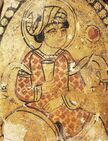 At the end of the twelfth century, a new influence appeared; it was medieval painting that came through Byzantine illumination developed in Syria. Christian iconography was taken up but adapted to the Muslim context. The manuscript of Dioscorides of Topkapi takes up models taken from Byzantine manuscripts that can be found in the Dioscorides of Vienna copied in Constantinople in the sixth century. But this influence can be found in manuscripts without any relation with ancient subjects, as in several manuscripts of the Maqamat. For example, In the Hariri of 1222 (BNF Ar.6094), the figures in the miniatures wear turbans while having Byzantine features and attitudes close to Christ or his apostles.[59]