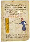 The first illustrated Arabic manuscript still preserved from the 11th century is Abd al-Rahman al-Sufi's Book of Fixed Stars, dated from around 1009 (Bodleian Library, Marsh144). This astronomy work was copied by the author's son himself, from models that already existed in the previous century. It is then necessary to wait until the end of the twelfth century to find a boom in miniatures in the Arab world.[45]