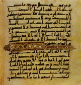Pages from the Uthman Qur'an. (notice the square medallions)