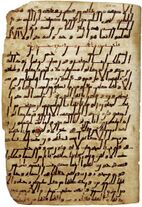 In the Codex B. L. Or. 2165, a Qur'ānic manuscript from the 1st century Hijra, with its fragments in the British Library, London (United Kingdom); Bibliothèque Nationale, Paris (France) and in Dār al–Athar al–Islāmiyyah, Kuwait city (Kuwait). Six oval dots ranked in three pairs punctuate the verses. Every tenth verse is marked by a red hollow circle surrounded by dots.[27][28][29]
