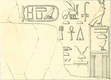 - ^ The inscription reads "Horus Menkhau, king of Upper and Lower Egypt Menkauhor, given life, stability, and [dominion for ever]. A commission carried out by ...". The inscription is now housed in the Egyptian Museum, Cairo, under the catalog number JE 38566.[17]