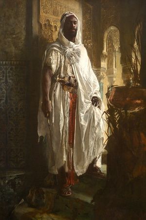 لوحة تجسد فارس موري (مغربي) وفرسه
