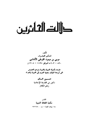 ولا يذهب إلى المطاعم إلا عند الضرورة القصوى: "فالرجل الحكيم لا يأكل في بيته ومن مائدته"(58). وهو يدرس التوراة في كل يوم حتى يموت، ويحذر ألا يخدعه أحد بأنه المسيح، ولكنه لن يفقد إيمانه بأن المسيح الحق سيأتي ويعيد إسرائيل إلى صهيون، ويقود العالم كله إلى الدين الحق، وإلى الوفرة، والأخوة، والسلام: "تفنى جميع الأمم أما اليهود فباقون غلى أبد الدهر". وغضب أحبار اليهود من مشنا التوراة، فقلما كان في وسع أحد منهم أن يعفو عما يرمي إلى من إحلال كتابه محل التلمود مع ما في هذا من جرأة، وقد استاء كثيرون من اليهود مما عزى إلى ابن ميمون من القول بأن من يدرس الشريعة أعلى مقاماً ممن يعمل بها. ولكن الكتاب رغم هذا كله قد جعل صاحبه أعظم اليهود جميعاً في عصره، فارتضاه جميع يهود المشرق مستشاراً لهم وبعثوا إليه بمسائلهم ومشاكلهم، وخيل الناس في جيل من الزمان أو الجاؤنية قد عادت إلى الوجود. ولكن ابن ميمون لم ينتظر حتى يستمتع بهذا الصيت، بل شرع من فوره يؤلف كتابه التالي، فبعد أن قنن الشريعة ووضوحها لليهود المؤمنين، وجه جهوده للعمل على أن يعيد إلى حظيرة الدين اليهودي من أغرتهم الفلسفة أو أغوتهم جماعات الملاحدة من اليهود القرائين في مصر، وفلسطين، وشمال أفريقية، وأصدر إلى العالم اليهودي بعد عشر سنين من الكد أشهر كتبه كلها وهو: دلالة الحائرين (1190)، وقد كتبه باللغة العربية بحروف عبرية ثم ترجم إلى اللغة العبرية وسمى: مودة نبو حيم، ثم ترجم كذلك إلى اللاتينية وأثار عاصفة من أشد العواصف الذهنية في القرن الثالث عشر.