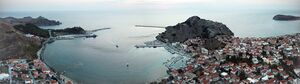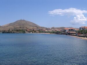 ميرينا ( Myrina ؛ باليونانية: Μύρινα) (وتُعرف أيضاً باسم كاسترو) هي بلدية سابقة في جزيرة لمنوس، شمال إيجة، باليونان. Since the 2011 local government reform it is part of the municipality Lemnos, of which it is a municipal unit.[2] It covers the west coast of the island, and has a land area of 82.049 متر كيلومربع (31.679 sq mi),[3] about 17.2% of the island's area. Its municipal seat was the town of Mýrina (pop. 5,107 at the 2001 census), located in the middle of the island's west coast. The town is also the capital of Lemnos, as well as the seat of the Metropolitan (Greek Orthodox bishop) of Lemnos. In addition to the town of Myrina, the municipal unit includes the communities of Káspakas (792), Platý (785), Thános (451), and Kornós (267). The 2011 census recorded 5,711 residents in the town and 8,006 residents in the municipal unit.[1]