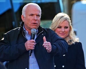 McCain launched a blog entitled McCain Blogette in 2007, documenting her father's presidential campaign as well as musing about fashion, music, and pop culture.[8][9] On June 12, 2008, McCain wrote on her blog that she had changed her party registration to Republican.[1] She said she did so "as a symbol of my commitment to my dad and to represent the faith I have in his ability to be an effective leader for our country and to grow and strengthen the Republican party when he is elected president of the United States."[1] In her book Dirty Sexy Politics, McCain states that she nearly overdosed on Xanax on Election Day.[10] In 2008, she published a book entitled My Dad, John McCain.[11]