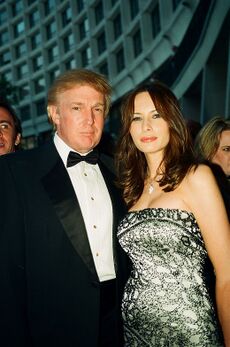 Donald proposed to Melania on April 26, 2004, on her birthday as they were leaving to attend the Met Gala.[82] He reasoned that he was more willing to wed as she had not insisted on marriage, and he felt she was an influence in the success he had seen over the previous years.[83] She also signed his prenuptial agreement without issue.[84] A few months before the wedding, Melania traveled to Paris with Anna Wintour and André Leon Talley to find a wedding dress, and Melania decided on a dress by John Galliano.[85] In the days leading up to the wedding, she appeared on the front cover of Vogue in her dress.[86][87]
