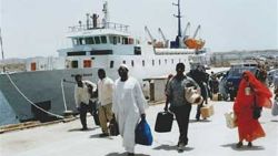 مسافرون سودانيون يصلون ميناء السد العالي.