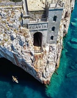 ميناء فلاڤيا Porto Flavia هو ميناء بحري يقع بالقرب من نبيدا في بلدة إگلسياس في جنوب سردينيا في إيطاليا. Built in 1923–24, it served as the mineral production hub of Masua in the west coast of the Sardinian Iglesiente area. It is named after Flavia Vecelli, the daughter of the harbor's engineer and designer Cesare Vecelli.[1] The harbor's characteristics make it unique in the world, and at the time of its construction it was an outstanding engineering feat.[2]