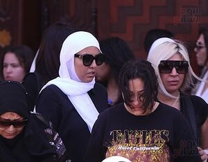 مي كساب أثناء جنازة والدها بمسجد الشرطة بالشيخ زايد