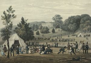 صورة مطبوعة لاجتماع نادي "بومن البريطاني الملكي للرماية"، 1822.