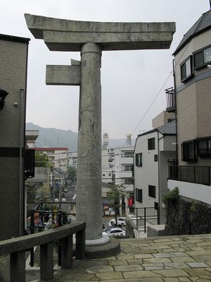 The city was rebuilt after the war, albeit dramatically changed. The pace of reconstruction was slow. The first simple emergency dwellings were not provided until 1946. The focus of redevelopment was the replacement of war industries with foreign trade, shipbuilding and fishing. This was formally declared when the Nagasaki International Culture City Reconstruction Law was passed in May 1949.[40] New temples were built, as well as new churches, owing to an increase in the presence of Christianity.[41] Some of the rubble was left as a memorial, such as a one-legged torii at Sannō Shrine and an arch near ground zero. New structures were also raised as memorials, such as the Atomic Bomb Museum. Nagasaki remains primarily a port city, supporting a rich shipbuilding industry.