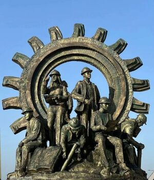 نصب إعادة إعمار العراق[1] هو عمل نَحَتي يرمز إلى نهضة البلاد بعد الدمار، يُصوّر مجموعة من العمال والمهندسين (رجالًا ونساءً) يحملون خرائطًا وأدوات عملًا وكتَبًا، أمام ترس صناعي ضخم يرمز للإنتاج والعمل المشترك.