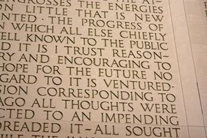 IN THIS TEMPLE AS IN THE HEARTS OF THE PEOPLE FOR WHOM HE SAVED THE UNION THE MEMORY OF ABRAHAM LINCOLN IS ENSHRINED FOREVER