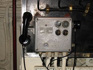 Loudaphone brand intercom station aboard RMS Queen Mary. The Loudaphone was specified for noisy environments such as aboard trains and trams and within a ship's engine room