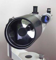 Catadioptric combinations have been used for many early optical systems. In the 1820s, Augustin-Jean Fresnel developed several catadioptric lighthouse reflector versions of his Fresnel lens.[1] Léon Foucault developed a catadioptric microscope in 1859 to counteract aberrations of using a lens to image objects at high power.[2] In 1876 a French engineer, A. Mangin, invented what has come to be called the Mangin mirror, a concave glass reflector with the silver surface on the rear side of the glass. The two surfaces of the reflector have different radii to correct the aberration of the spherical mirror. Light passes through the glass twice, making the overall system act like a triplet lens.[3] Mangin mirrors were used in searchlights, where they produced a nearly true parallel beam. Many Catadioptric telescopes use negative lenses with a reflective coating on the backside that are referred to as “Mangin mirrors”, although they are not single-element objectives like the original Mangin, and some even predate Mangin's invention.[4]