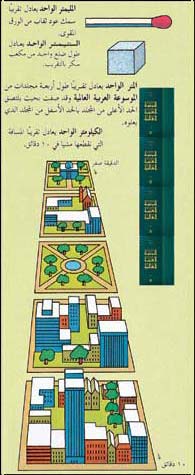 هذا وتقاس المسافات الطويلة كالتي بين المدن بالكيلومترات. ويعادل الكيلو متر 5/8 الميل تقريبًا. أما المسافات القصيرة مثل المسافة بين مبنيين في الشارع نفسه فتقاس بالأمتار.