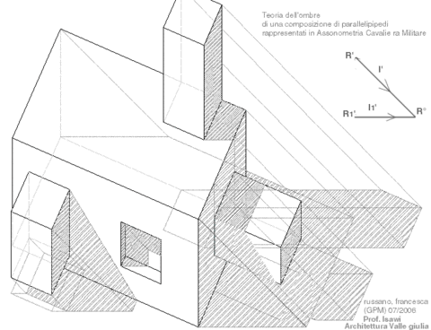 غالبا الظلال تسمح باستكمال المعلومات ثلاثية الأبعاد لشكل ما، لأنها تعتبر رؤيا من مركز إسقاط أخر، أي أن هناك اسقاطين لنفس الشكل: مركز الاسقاط الاول يتطابق مع مركز النظر والاخر مع مصدر الضوء. في كلتا الحالتين ، من الضروري معرفة مفاهيم "عمليات الاسقاط والتقاطع" (operazioni di proiezioni e sezioni) لضمان تحقيق النتائج المرجوة. أو السماح لأفضل قراءة لنتائج الرسم واستبعاد غير مفهومة ومتناقضة أحيانا وغير ملائمة في كثير من الأحيان من من وجهة نظر جمالية.