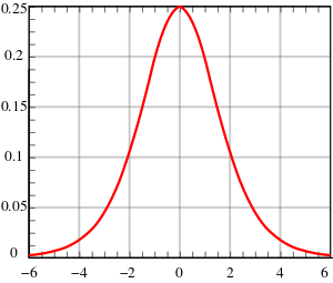 The standard Hubbert curve. For applications, the x and y scales are replaced by time and production scales.