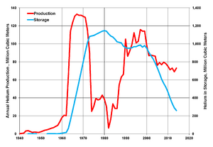 Helium production and storage in the United States, 1940–2014 (data from USGS)
