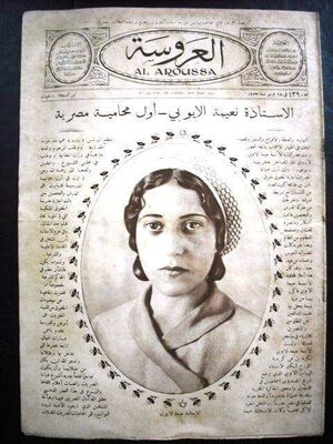 - صورة نعيمة الأيوبي في مجلة " العروسة ا " عام 1933 https://commons.wikimedia.org/wiki/File:Al_Arousa06.JPG