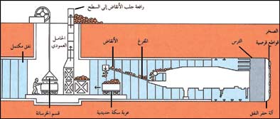 تبنى أنفاق التعدين بوساطة التفجير أو بآلات حفر الأنفاق. مداخل المنجم ليست مبطنة، ولكن قد تسند بدعامات. ومعظم الأنفاق في المناجم مفتوحة من طرف واحد فقط.