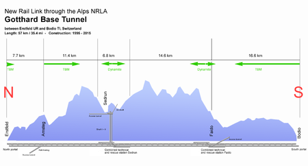 - ^ أ ب ت "Project data – raw construction Gotthard Base Tunnel" (PDF). AlpTransit Gotthard AG. Retrieved 15 October 2010.
