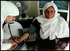 تقدم الأونروا الرعاية الصحية الأساسية للاجئين المسجلين من خلال شبكة من 125 عيادة خارجية استقبلت 8.8 مليون مريض في عام 2004.