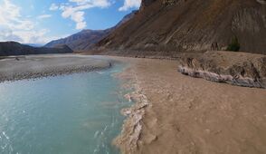 The Vakhsh is located in a seismically active region, and earthquakes, in addition to high groundwater levels (especially during the wet season), cause hundreds of landslides per year.[17] These landslides occasionally block the river and form landslide dams.