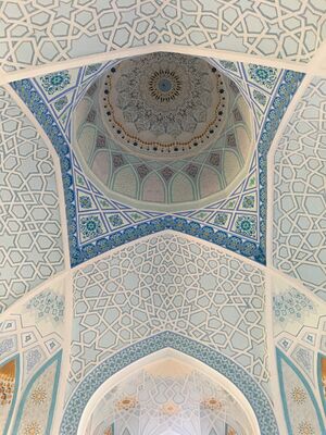 - The Kasim Sheikh complex was built in the 16th century by Abdulla Khan, Emir of Bukhara, as a khanagha, a hostel for wandering Sufi holy men.[10] The mosque at the khanagha is now used as Navoi’s main mosque, but it is open to the public. There is an attractive turquoise dome and majolica tile work on the exterior of the building, and the interior is painted in geometric patterns in shades of blue.
