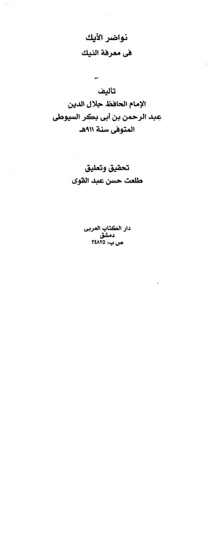 - الإمام الحافظ جلال الدين عبد الرحمن السيوطى، نواضر الايك في معرفة النيك، تحقيق طلعت عبد القوى، دار الكتاب العربى، دمشق.
