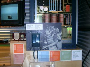A Contempra Telephone (Artifact no. 2000 0019) by Northern Electric ca. 1967, with the first Canadian-designed, fully electronic digital PBX telephone switching board ca. 1972., on display at the Museum of Science and Technology (Aug. 2008).