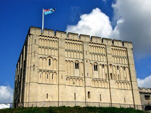Norwich Castle was founded soon after the Norman Conquest.[15] The Domesday Book records that 98 Saxon homes were demolished to make way for the castle.[16] The Normans established a new focus of settlement around the Castle and the area to the west of it: this became known as the "New" or "French" borough, centred on the Normans' own market place, which survives today as Norwich Market, the largest permanent undercover market in Europe.[6]