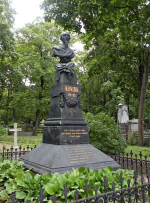 Nikolai Alekseyevich Nekrasov died on 8 January 1878. Four thousand people came to the funeral and the procession leading to the Novodevichy Cemetery turned into a political rally.[11] Fyodor Dostoyevsky delivered a keynote eulogy, calling Nekrasov the greatest Russian poet since Alexander Pushkin and Mikhail Lermontov. One section of the crowd, the followers of Chernyshevsky (with Georgy Plekhanov as one of their leaders), chanted "No, he was greater!"[21] Members of Zemlya i Volya, alongside other radical groups (with wreaths "From the Socialists"), were also present. "His funeral was one of the most striking demonstrations of popularity ever accorded to a Russian writer," according to Mirsky.[22]