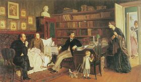 In 1849 Panayeva gave birth to a son, but the boy soon died. Another death, of Ivan Panayev in 1862, drove the couple still further apart.[26] The main reason for Panayeva's final departure, though, was Nekrasov's 'difficult' character. He was prone to fits of depression, anger, hypochondria and could spend days "sprawling on a couch in his cabinet, greatly irritated, telling people how he hated everybody but mostly himself," according to Zhdanov.[3] "Your laughter, your merry talking could not dispel my morbid thoughts/They only served to drive my heavy, sick and irritated mind insane," he confessed in a poem.[27]