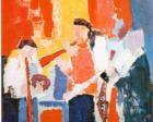 وفي عام 1952، بعد أن شاهد مباراة في كرة القدم، اهتم بهذه اللعبة، ورسم لوحات عدة بمقاسات كبيرة اقترب بها من التشبيهية. وامتازت هذه الأعمال بحركات اللاعبين العنيفة وبالألوان النضرة والسخية، وبالاهتمام بالإنارة التي أضفت على المشاهد طابعاً خيالياً. وكان يسود في هذه اللوحات لونان اثنان في أغلب الأحيان هما: الأزرق المائل إلى السواد، والأحمر الصاخب، وبينهما لمسات زهرية أو زرقاء، صفراء أو سمراء، موزعة على سطح اللوحة.