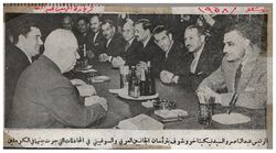 جمال عبد الناصر ونيكيتا خروشوڤ في اجتماع بالكرملين، 1958.