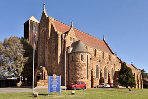 Cave was born on 22 September 1957 in Warracknabeal, a country town in the Australian state of Victoria, to Dawn Cave (née Treadwell) and Colin Frank Cave.[7][8] As a child, he lived in Warracknabeal and then Wangaratta in rural Victoria. His father taught English and mathematics at the local technical school; his mother was a librarian at the high school that Cave attended.[9] Cave's father introduced him to literary classics from an early age, such as Crime and Punishment and Lolita,[10] and also organised the first symposium on the Australian bushranger and outlaw Ned Kelly,[11] with whom Cave was enamoured as a child.[12] Through his older brother, Cave became a fan of progressive rock bands such as King Crimson, Pink Floyd and Jethro Tull,[13] while a childhood girlfriend introduced him to Leonard Cohen, who he later described as "the greatest songwriter of them all".[14]