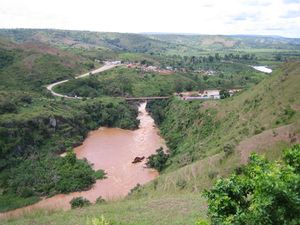 المعبر الحدودي عند شلالات روسومو على نهر كاگـِرا. تنزانيا إلى اليسار، ورواندا إلى اليمين.