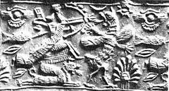 B36-46Against Ninurta, Enki fashioned a turtle from the clay of the abzu. Against him he stationed the turtle at an opening, at the gate of the abzu. Enki talked to him near the place of the ambush and brought him to the place where the turtle was. The turtle was able to grab Ninurta's tendon from behind. The hero Ninurta managed to turn back its feet. Enki, as if perplexed, said, 'What is this!' He had the turtle scrape the ground with its claws, had it dig an evil pit. The hero Ninurta fell into it with the turtle. The hero did not know how to get out from ....... The turtle kept on gnawing his feet with its claws (?).