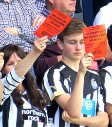في عام 2015، قاطع بعض مشجعي نيوكاسل المباريات احتجاجًا على إدارة النادي من قبل مايك أشلي، وكانوا مدعومين من مشجعي النادي المشهورين مثل ستينگ و [جيمي نيل]].[134][135]