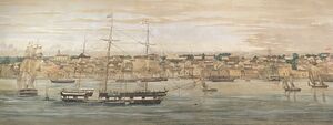 During the first half of the 19th century, New Bedford was one of the world's most important whaling ports.[4] At its economic height during this period, New Bedford was the wealthiest city in North America per capita. New Bedford was also a center of abolitionism at this time. The city attracted many freed or escaped African-American slaves, including Frederick Douglass, who lived there from 1838 until 1841.[5] The city also served as a setting in Herman Melville's 1851 novel Moby-Dick. From 1876 to 1900, New Bedford served as the initial home port for the Revenue Cutter School of Instruction, the precursor of the United States Coast Guard Academy.[6]