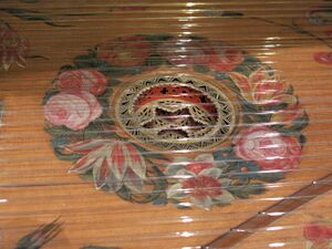 Harpsichords have been decorated in a great many different ways: with plain buff paint (e.g. some Flemish instruments), with paper printed with patterns, with leather or velvet coverings, with chinoiserie, or occasionally with highly elaborate painted artwork.[10]