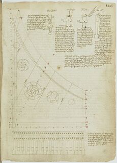 An early diagram of a vertical harpsichord (clavicytherium) by Arnault de Zwolle, 1430ح. 1430