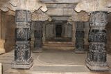 The inner walls of the temple has friezes containing extensive narration of the Hindu epic Ramayana.[99][96] The temple has an entrance mandapa and a yajna ceremony hall, whose ceiling is designed to ventilate fumes and smoke through the roof. Inside the main mandapa are four intricately carved pillars in the Hoysala style; these carving include depictions of Rama, Lakshmana, and Sita of Vaishnavism, Durga as Mahishasuramardini of Shaktism and Shiva-Parvati of Shaivism.[96] Images are missing from the square sanctum. The temple has a smaller shrine with friezes depicting the legends of Vishnu avatars.[99]