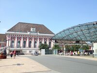 Hamm has three stations, the main railway station Hamm (Westfalen) and two minor stations, one in Bockum-Hövel and the other one in Heessen. The main station is one of the biggest railway hubs in Germany, and connected with one of the largest marshalling yards in Europe, the latter now only partly operating. Notable is the railway station for its Art Deco Gründerzeit inspired building styles. Hamm has been connected to the rail since 2 May 1847. Its huge railroad yard—Europe's biggest at the time[3]—was bombed repeatedly during World War II,[4][5] as was the city itself (in December 1944 it was hit by eleven raids on one day).[3]