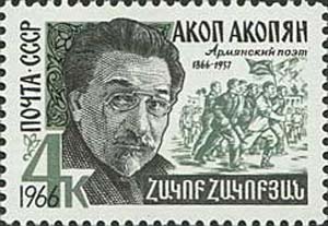 هاگوپ هاگوپيان Hagop Hagopian (عاش 1866، إليساڤتپول - 1937، تبليسي) مؤسس الشعر الثوري في الأدب الأرمني الشرقي.