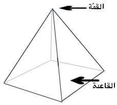 تعريف آخر: الهرم هو مـجسم قاعدته مضلع منتظم، رؤوسه مربوطة مع نقطة خارج القاعدة بحيث إذا نزلنا عمود من هذه النقطة فإنه يلتقي مع نقطة التقاء أقطار القاعدة.